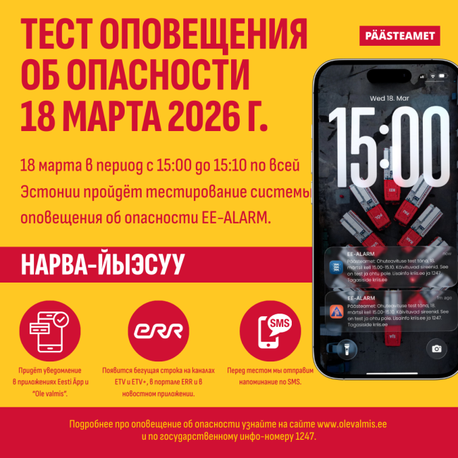 В Эстонии за последние четыре года была создана государственная система экстренного оповещения EE-ALARM, через которую населению в случае угрозы направляются быстрые и оперативные уведомления.